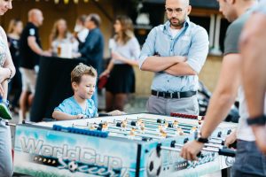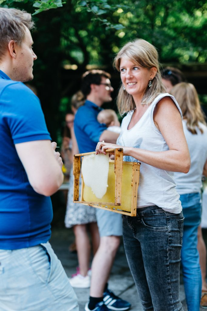 Der Natur-Aspekt stand neben klassischen Programm-Highlights für Familien wie Hüpfburg, Kistenrutschen, Bogenschießen oder Kinderschminken im Vordergrund. Das Netzwerk „Blühende Landschaften“, ein Projekt zum Artenerhalt von heimischen Insekten und Blühpflanzen sowie zur insektenfreundlichen Agrarförderung stellte sich und sein Anliegen eindrucksvoll vor. Imker zeigten Kindgerechtes zur Bienenhaltung und zur Honiggewinnung. Der Erlös der Tombola ist für das nachhaltige Netzwerk „Blühende Landschaften“ bestimmt. Und um die blühenden Landschaften nicht nur materiell zu unterstützen, sondern auch ganz praktisch, sind Aktionen der Wirtschaftsjunioren zur Umsetzung insektenfreundlicher Beblühung geplant. Selbstverständlich kam auch der Business-und Netzwerkaspekt bei Barbecue, Kaffee und Kuchen sowie bei den zahlreichen weiteren Angeboten nicht zu kurz.