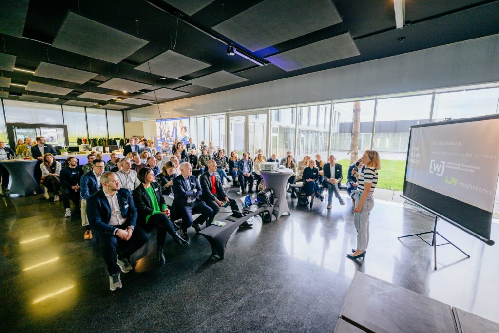 Bereits zum zweiten Mal haben die Wirtschaftsjunioren Paderborn+Höxter gemeinsam mit der Paderborner Personalberatung und -dienstleistung FreshWorks die „New Work Night“ ins Leben gerufen und in Vorträgen und Interviews weitere Themengebiete der neuen Arbeitswelt erörtert. Mit rund 100 Gästen fand die Veranstaltung diesmal in den Räumen des marktführenden Tresorherstellers Hartmann Tresore AG in der Pamplonastraße statt.
