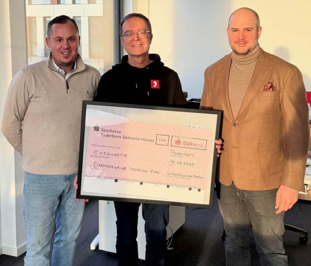 Die Wirtschaftsjunioren Paderborn + Höxter haben der Delbrücker Elterninitiative „Handicap Kidz“ eine Spende von 1.000 Euro überreicht.